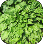Fast growing mound of gold leaves with medium green rippled margins. Pale purple flowers in July. 19"H x 25"W